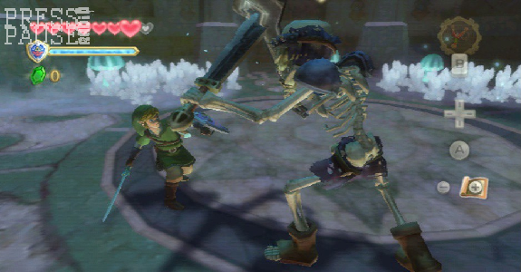 Another key character in Skyward Sword is Fi, an ethereal servant of the great Goddess channeled from your sword. Unlike Navi from Ocarina of Time, Fi offers relatively helpful advice with the click of a button, and won’t make a habit of pestering players with nonsense like “Press ‘A’ to open this door.” Fi is also your personal questing guide, who leads you in search of key characters like Zelda via the “dowsing” process. Zelda apparently loves wandering in this latest chapter, so your chances of finding the real deal are always unknown.