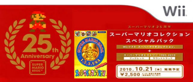 It's felt like an eternity, but it looks like Nintendo will be answering the prayers of many hungry gamers. We were excited to learn that a 25th Anniversary Collection of Super Mario Bros. was announced to hit stores in Japan as soon as the 21st of October. That's right, all four classic Mario games enhanced with 16-bit graphics - this is the classic Mario compendium we've all been screaming for. The best part is that Instead of a download on the Virtual Console, we'll have ourselves a nifty collection on a physical disc, in a limited edition box with a history guide devoted to the life and development of the franchise. Fans who get a hold of this set will also be treated to a musical soundtrack including songs from Super Mario Galaxy 2.