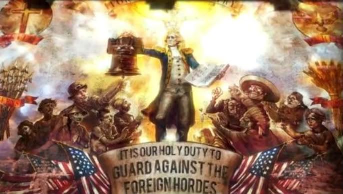 which is much more stressed in the game that I have noticed just from all of the images & messages through the trailers in the tour of Columbia you're given & the talk that Irrational has given through various interviews about how Columbia embraced these ideals beyond gospel & are slowing their descent into chaos. while the combat ensues you're then attacked by the first